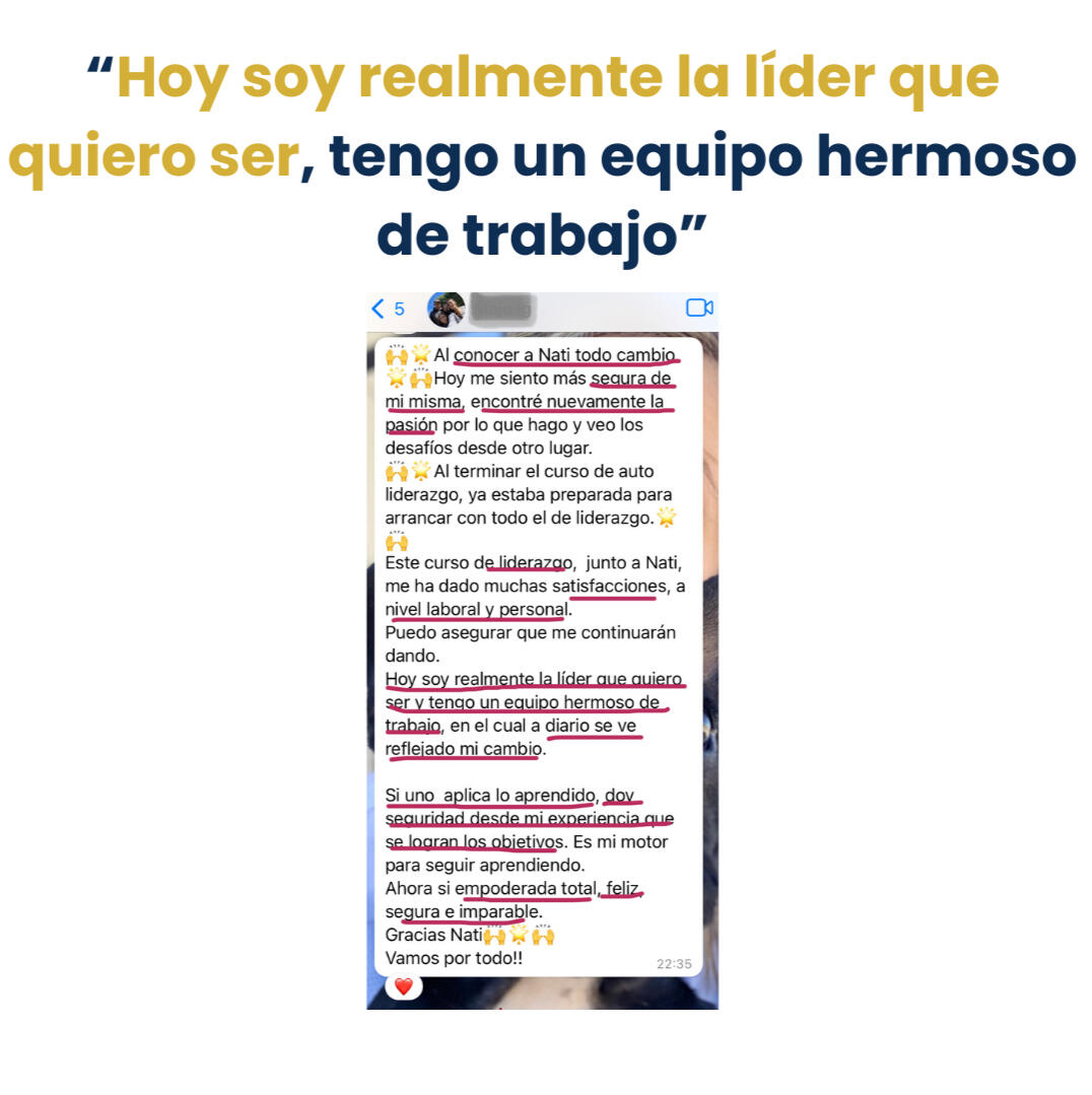🔥 Sentir que reaccionas a lo que pasa a tu alrededor a responder con estrategia y asertividad.🔥 Dudar de ti misma y de tus decisiones a tomar decisiones estratégicas y asertivas.🔥 Dejar que el estrés y la presión afecten tu liderazgo a volver a tu centro y poder personal, en minutos.🔥 Estar siempre ocupada, con mil interrupciones a tener un equipo autónomo que sabe resolver sin depender siempre de ti.🔥 Estar en un rol más operativo en tu liderazgo a un rol estratégico, que impulsa la mejora y el crecimiento inteligente en los demás.🔥 De vivir apagando incendios a convertir problemas en palanca de crecimiento tanto para ti como para tu equipo, porque vas a tener herramientas prácticas de rápida aplicación.🔥 Que te cueste poner límites y no te tomen enserio como líder a poner límites claros y sin titubeos desde la confianza.